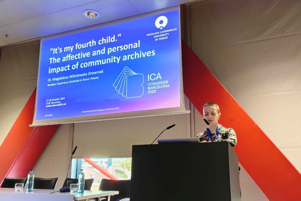 W dniach 27–30 października 2025 r. dr Magdalena Wiśniewska-Drewniak reprezentowała naszą katedrę na kongresie Międzynarodowej Rady Archiwów w Barcelonie, gdzie w ramach sesji „New archival ways for communities” zaprezentowała referat pt. „’It's my fourth child'. The affective and personal impact of community archives”.